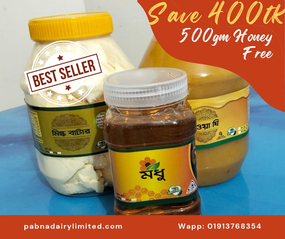 ১ কেজি ঘি ও ১ কেজি বাটার কিনলে সাথে পাচ্ছেন হাফ কেজি প্রাকৃতিক জংলী চাকের মধু ফ্রি!!! জলদি অর্ডার করুন আর সেভ করুন ৪০০ টাকা!!!